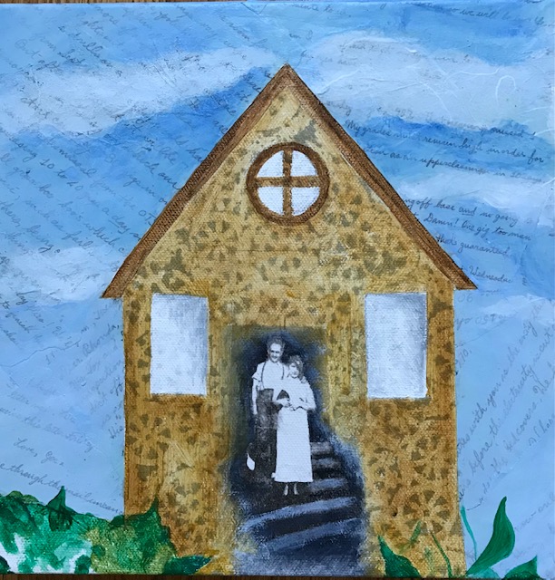 I was intrigued by these correspondences for many reasons and wanted to recycle them into something memorable. Written on blue paper, they became the sky in the series of images. The viewer is taken in vicariously to imagine the love from one person to another or the story being told in each image.